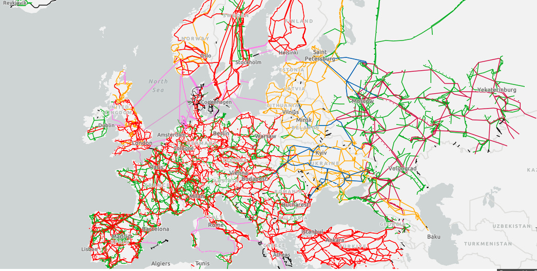 Tracing back the origin of electricity is not an easy task since it’s often imported from other areas that in turn imports it from other areas again. In Europe, electricity grids are highly interconnected as can be seen in the illustration over transmission lines below.