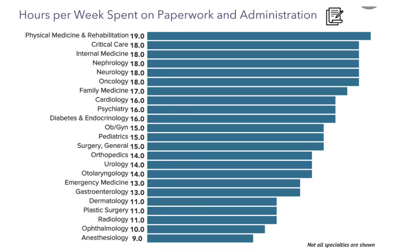 Another survey showed that some physicians spend almost 20 hours a week on paperwork and documentation: