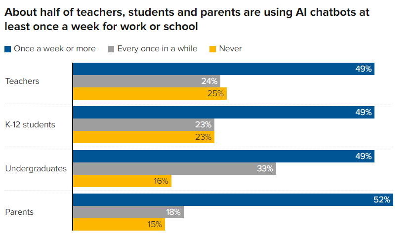 Almost half of U.S. teachers and K-12 students say they are using ChatGPT weekly.