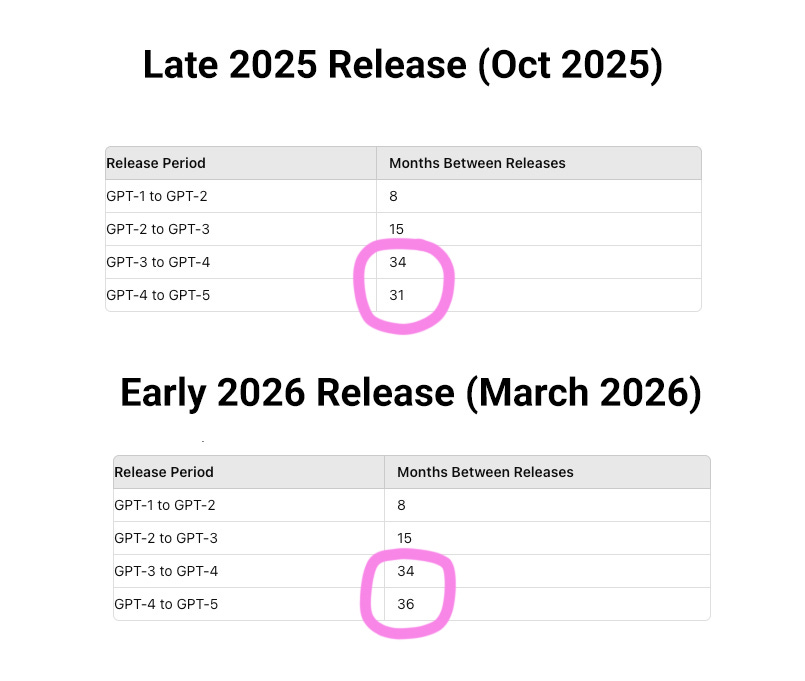 GPT-5 (2025) and GPT-6 (2026) would have to be successful and have Agentic AI relevance in work automation.