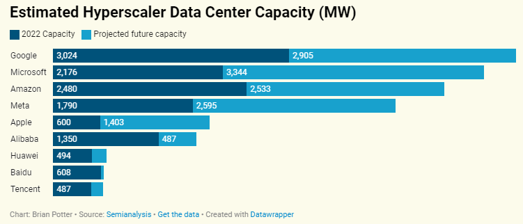 On this basis alone we can understand Microsoft’s capex on AI so far, while for Amazon, Google and especially Meta, it’s less clear to me. Microsoft has been the most aggressive in expanding new datacenters in South-East Asia and Europe for the 2024/2025 cycle.
