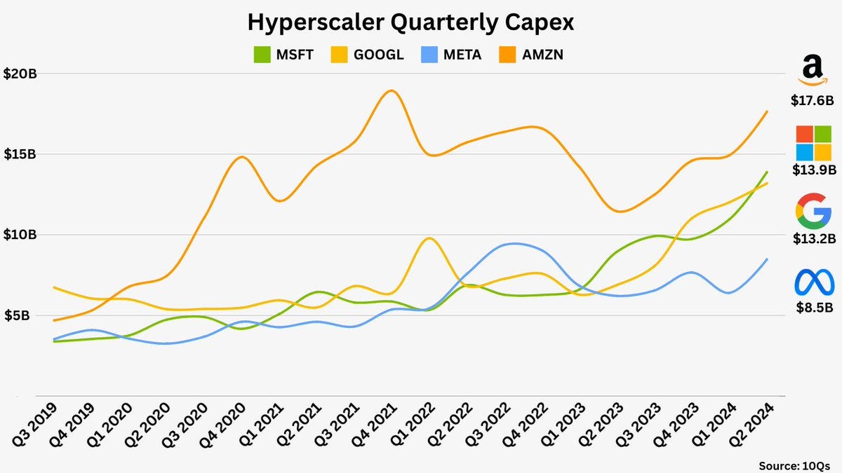 Earnings provided us with more data of how BigTech hyperscalers are investing in Capex around AI for the long-term, inspite of little ROI in 2024 and perhaps even in 2025. (source: This tweet)