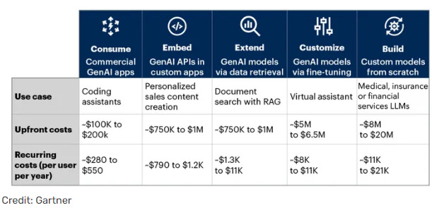 Gartner found that early generative AI adopters are struggling with escalating costs and said that deployments can range in cost from $5 million to $20 million.