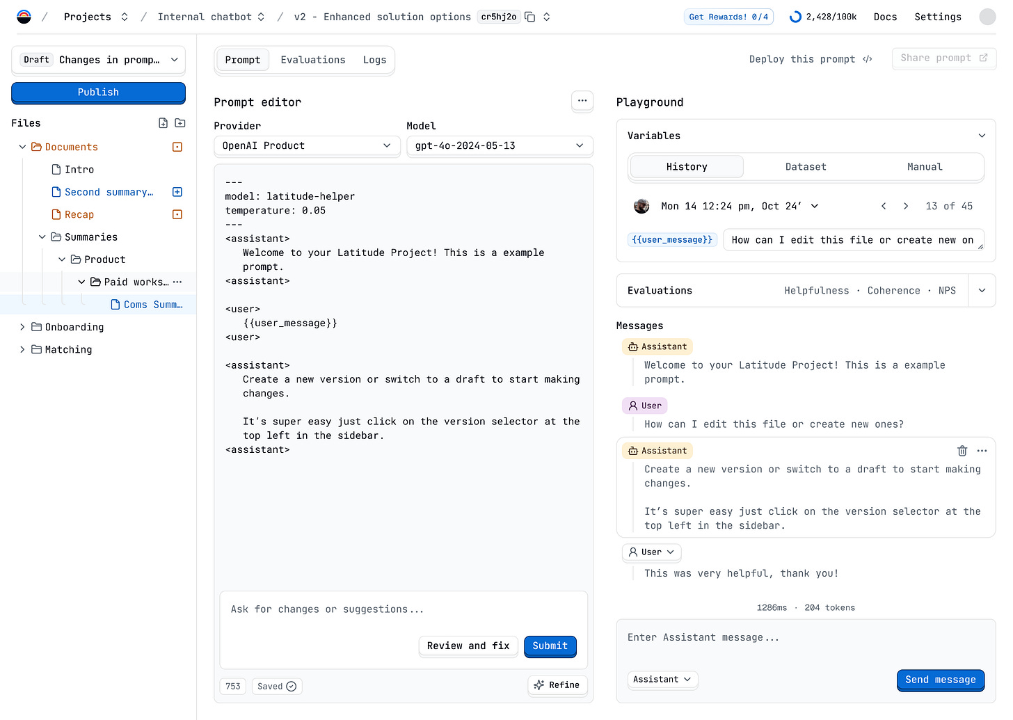 Latitude helps teams collaborate on prompt engineering with confidence. Evaluate performance using production logs, refine and test prompts at scale, and deploy seamlessly with version tracking, an SDK, and a gateway.π Sign up for free