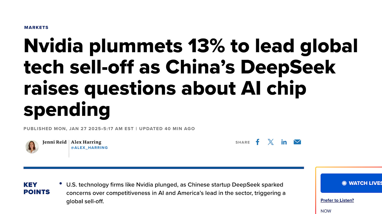 DeepSeekās innovative use of chips and improved learning algorithms challenges previous assumptions. Do we actually need 500 billion dollars worth of data centers if we can train powerful models for a fraction of the cost? Perhaps, perhaps not.
