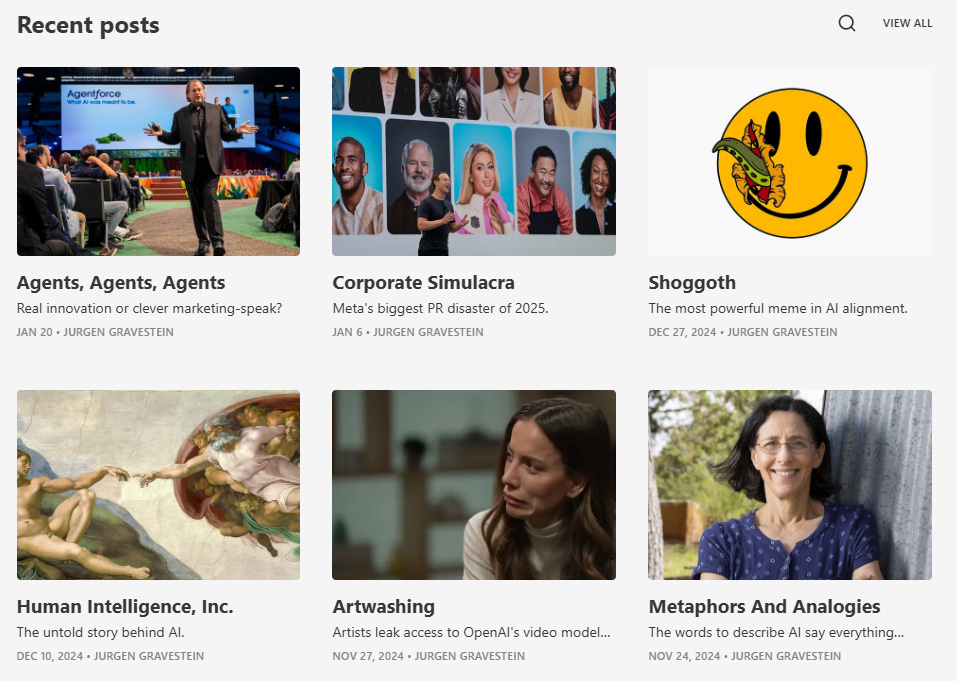 I find Jurgenās writing fresh and very original and relevant in todayās quickly changing AI landscape.
