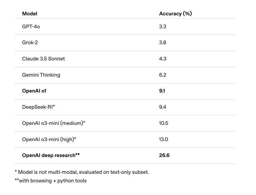 Deep Research significantly outperformed other AI models like GPT-4 and Gemini Thinking on benchmarks like Humanity’s Last Exam. The tool is initially available to paid ChatGPT Pro subscribers at $200/month, with plans to expand access later.
