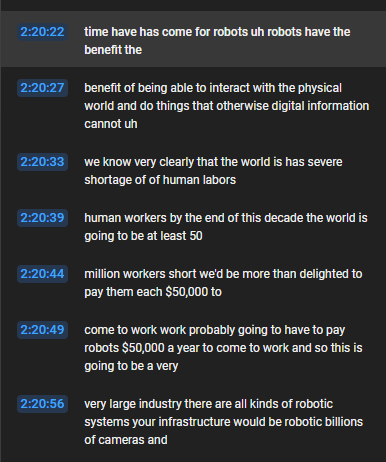 If you are just going to listen to one part of the GTC keynote, go to 2:20:12 seconds. Near the very end of the GTC keynote that was a little too long.