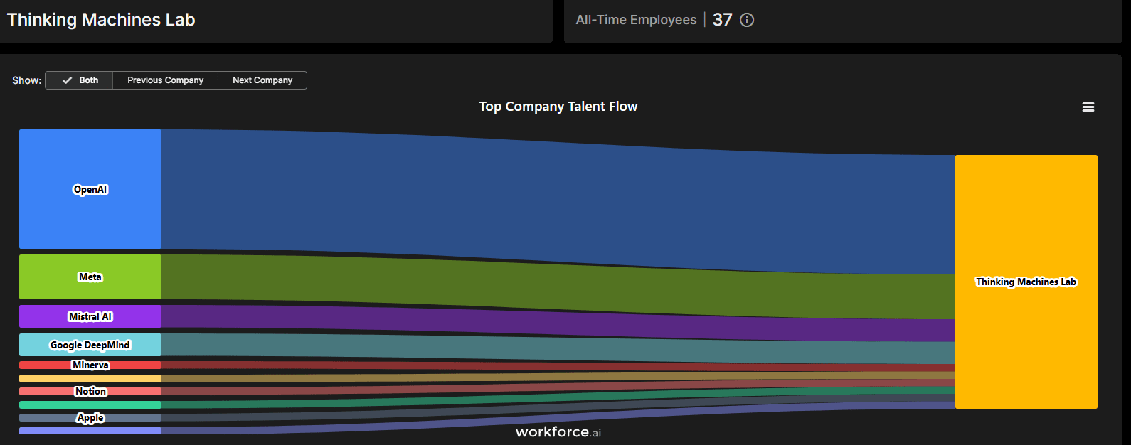 Thinking Machines Lab is one of a handful of AI startups that investors believe to be a legitimate threat to leading AI model developers today and why this is relevant is that it has a decent chance of continuing to receive talent from both OpenAI and Anthropic whose most exciting days are already over.