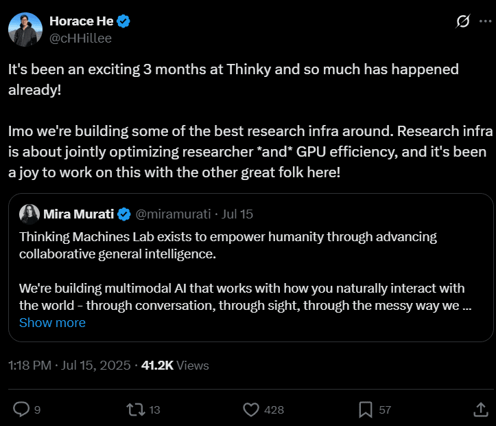 These are clearly “big” thinking machines that the startup are working on. Amid OpenAI’s delay of their own open-weight model, it gives more weight to the work that Thinking Machines are doing behind the scenes. With Meta going closed-model now, it creates a huge void in the ecosystem as Chinese models take the crown in the open-weight LLM rankings and leaderboards.