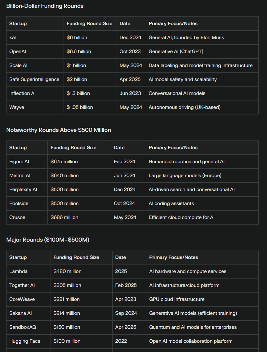 Jane Street: A global proprietary trading firm that leverages advanced technology and quantitative research for financial trading. Its investment likely reflects interest in AI’s applications in financial modeling and data analysis.