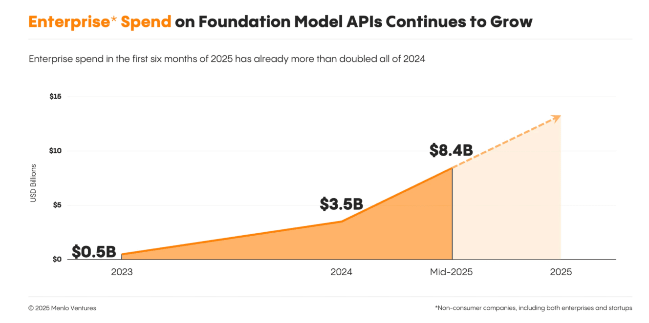 By the end of 2023, OpenAI commanded 50% of the enterprise LLM market, but its early lead has eroded. Today, it captures just 25%3 of enterprise usageāhalf of what it held two years ago.