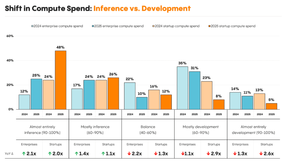 Spending on compute is steadily shifting from building and training models to inference, with models actually running in production.
