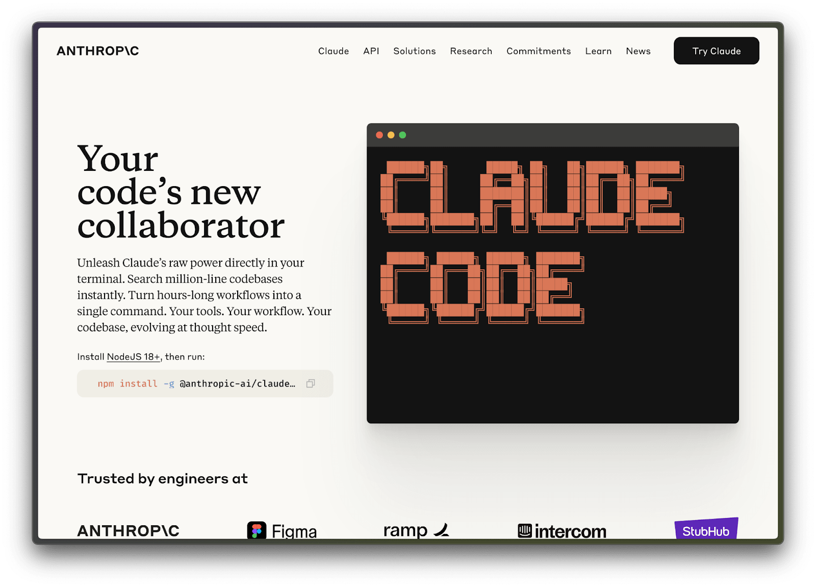 Anthropic: “Deep coding at terminal velocity. Claude Code embeds Claude Opus 4.1—the same model our researchers and engineers use—right in your terminal. It has deep codebase awareness and the ability to edit files and run commands directly in your environment.”