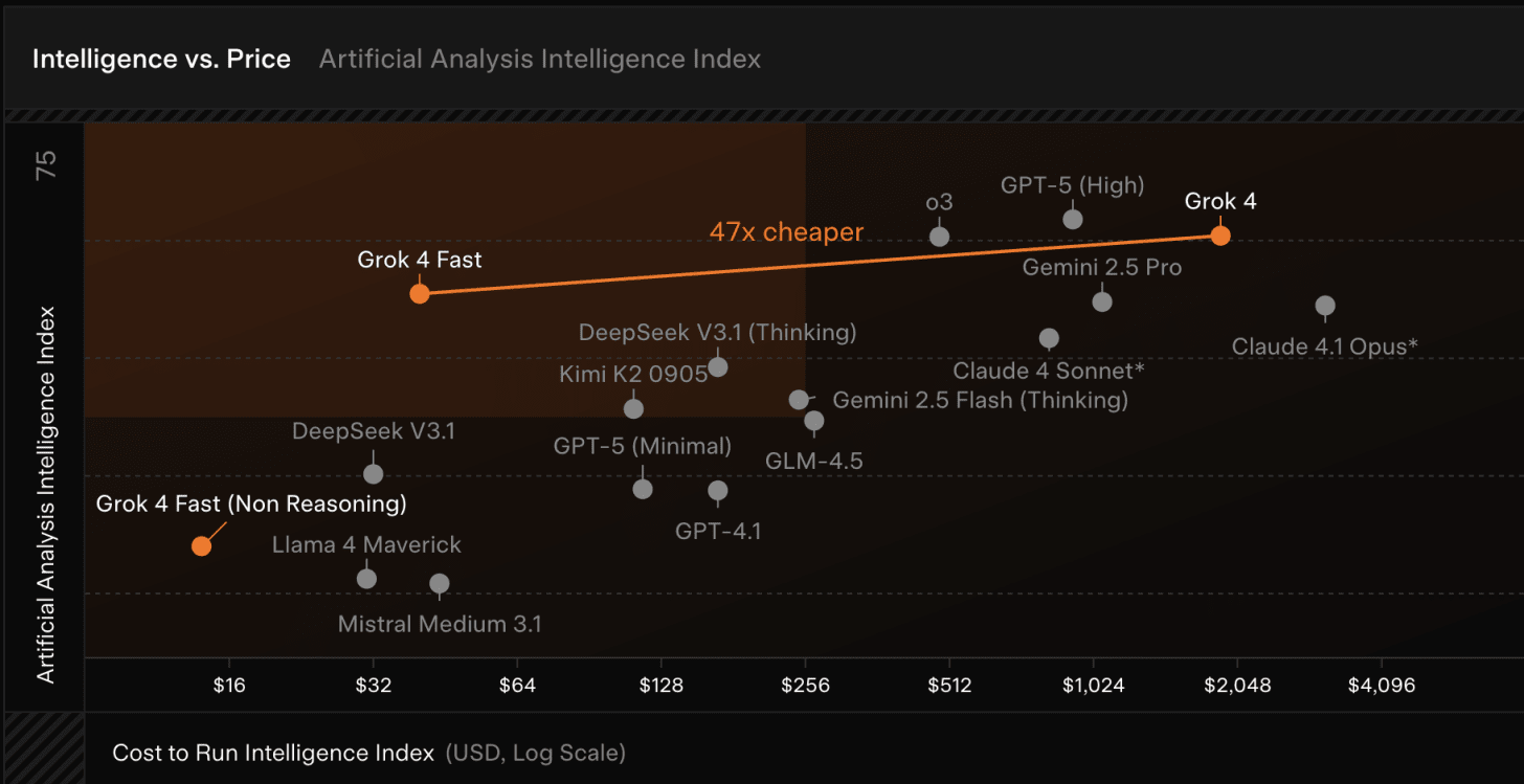 xAI debuts a faster and more cost-effective version of Grok 4. The update reduces computation and cost by using about 40% fewer thinking tokens and a unified reasoning/non-reasoning architecture that xAI says cuts price by 98% while matching Grok 4’s benchmark performance and improving speed.