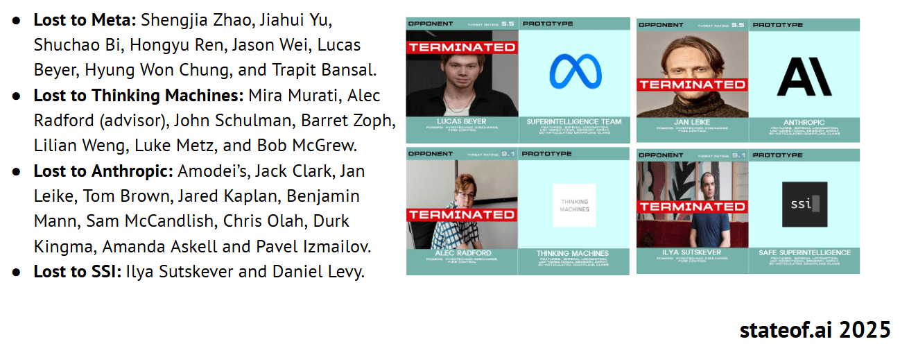 Amid the OpenAI mafia starting so many new AI startups, the churn of talent at OpenAI is starting to add up: (Ironically itās Chinese talent for hire was easily poached with monetary tactics by Meta).