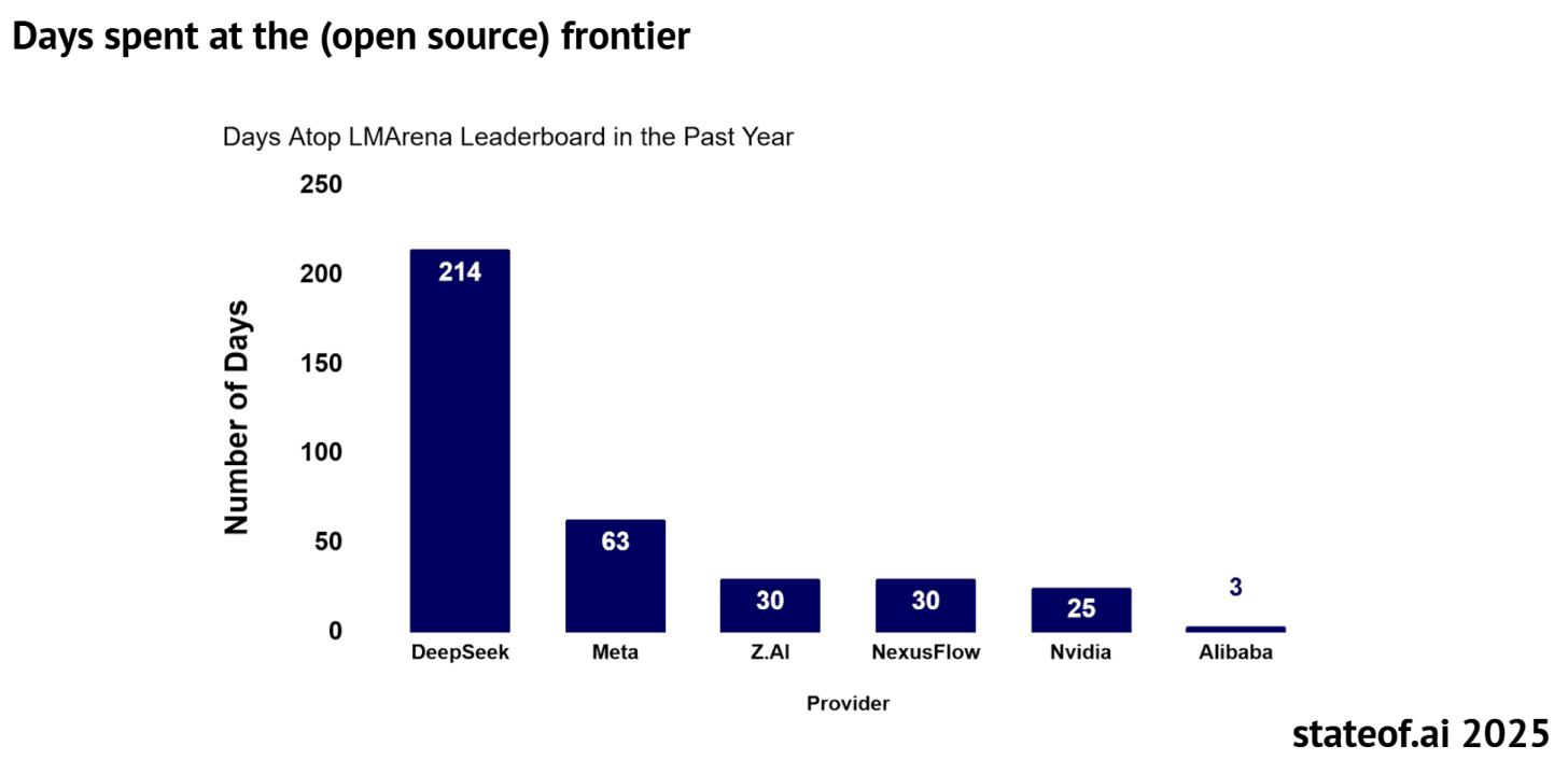 As of late 2025, China has taken the lead in the open-source (open-weight) stack, but not with DeepSeek, but rather with Alibaba Qwen.