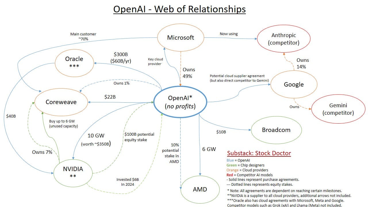 Neo Clouds, AI chip makers, Hyperscalers: Oracle, AMD, CoreWeave, Nebius, Softbank etc⦠roughly 20 companies partnering together to push the demand for AI compute faster.