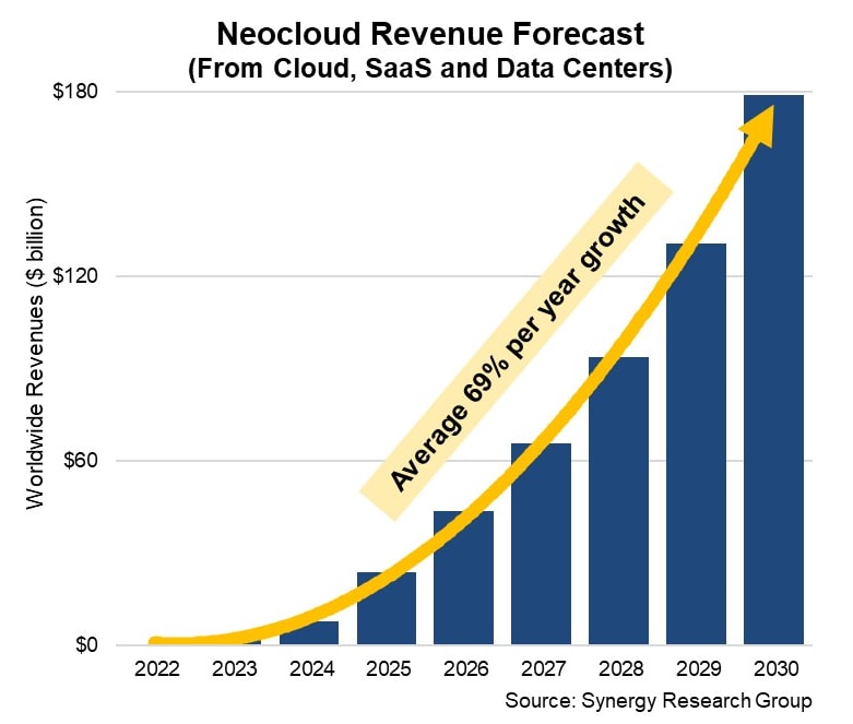 Crypto miners like CoreWeave (and now a dozen more) have pivoted and are in the process of pivoting into AI workloads and renting GPUs as the price of Bitcoin means Bitcoin mining is more volatile and less profitable. The invention of Bitcoin in 2009 has played a not insignificant role in the rise of Nvidia and AI Infrastructure. Even as Equities and Gold are at or near all-time highs as you read this. The AI bull market in stocks (equities, projected 2023 to 2029) is going to be something, and if you think it’s near the top – you haven’t seen anything yet. It’s very difficult for Nvidia’s stock to correct, since the demand for AI chips is so intense. This Semiconductor AI boom is thus highly likely to make Neo Clouds among the most investable growth stories of the AI cloud age, in my humble opinion.