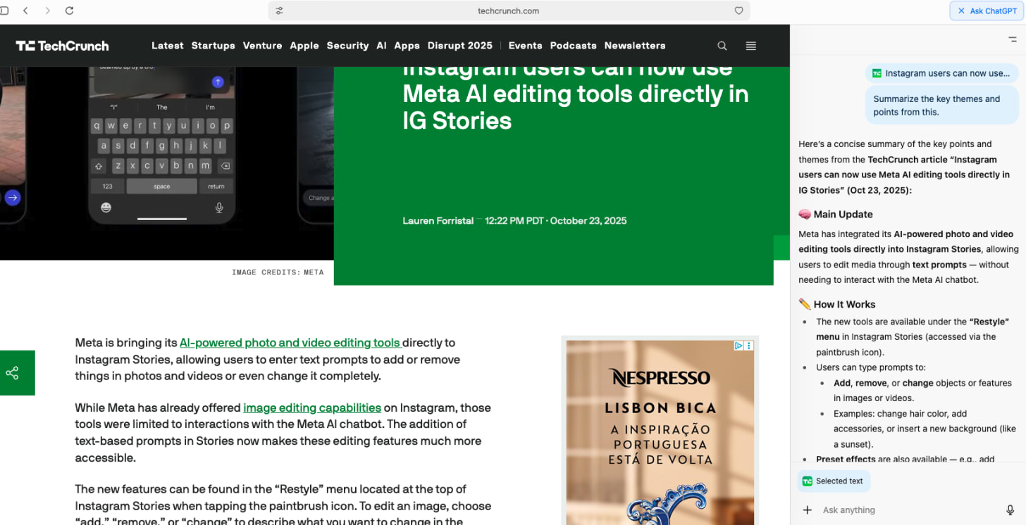 With Atlas, ChatGPT automatically knows the page youβre on, so you can ask: