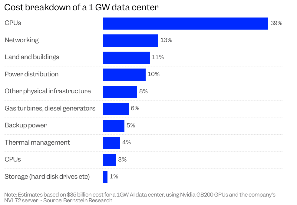 With Nvidiaās 70% gross profit margins, Bernstein calculates that the company captures nearly 30% of total AI data center spending as profit.