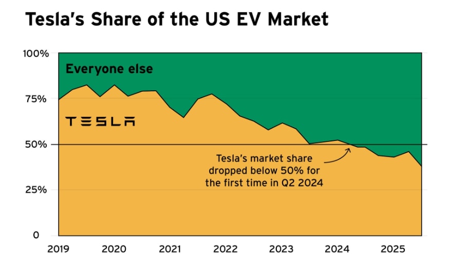 Teslaās Share of the EV Market is in Free-Fall in 2025