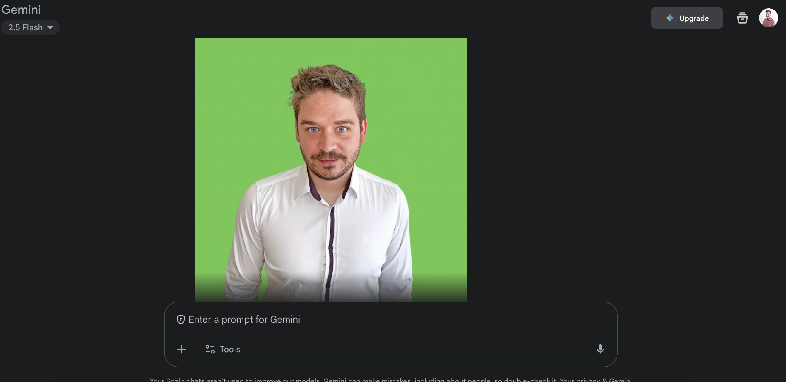 Prompt: βMake the background green screen.β β Nano Banana removes the background automatically.