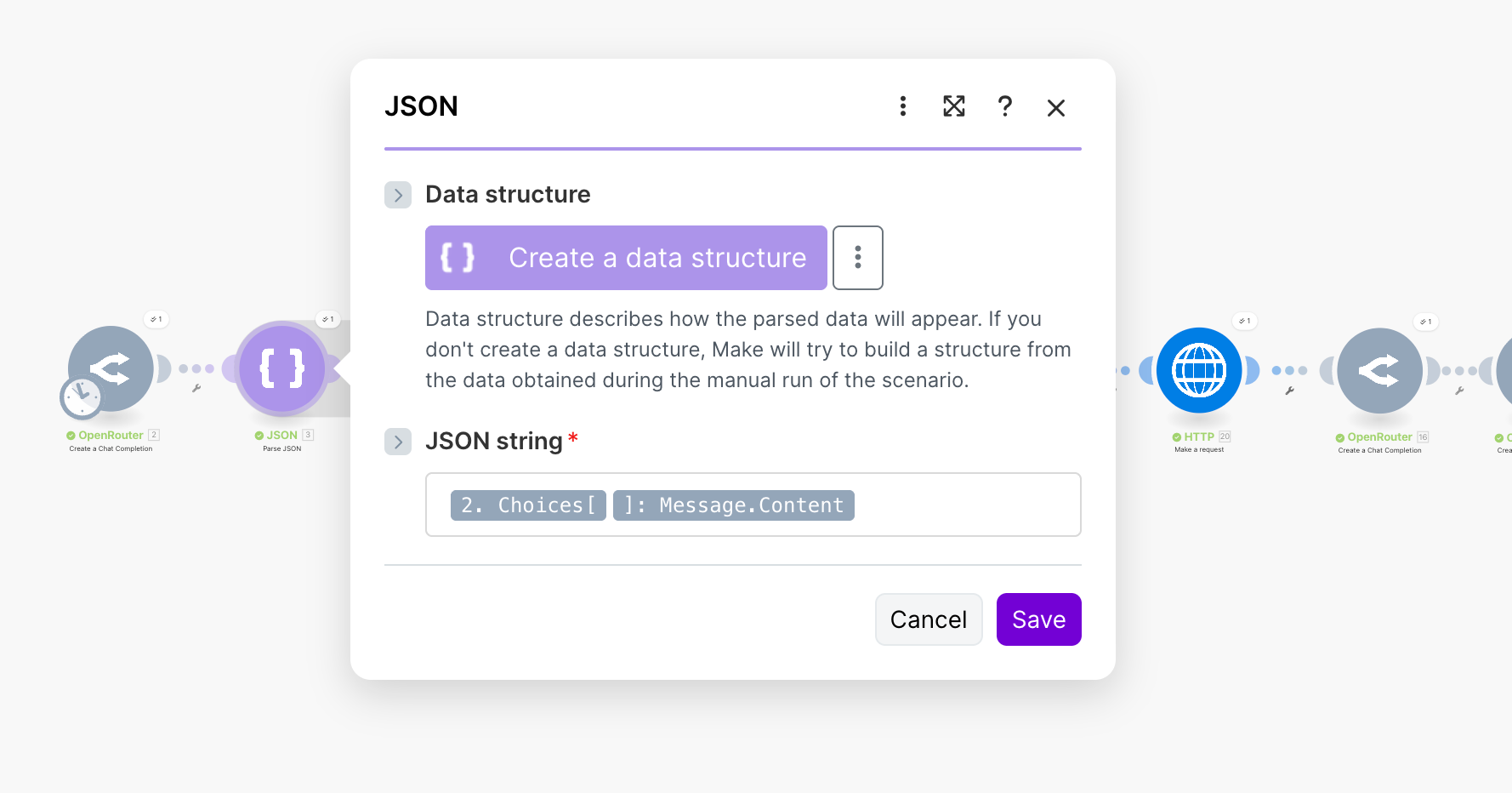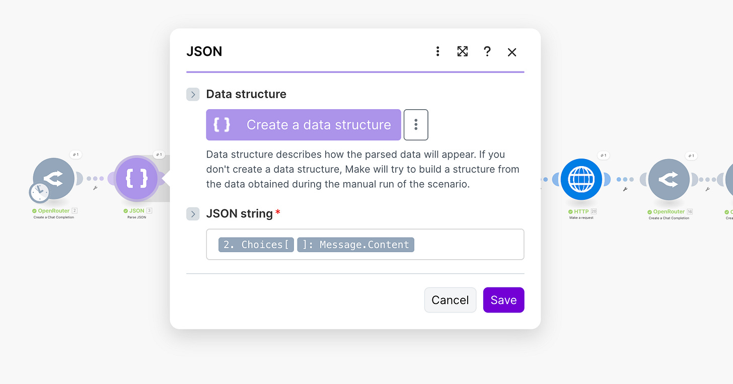 Make module: JSON → Parse JSON