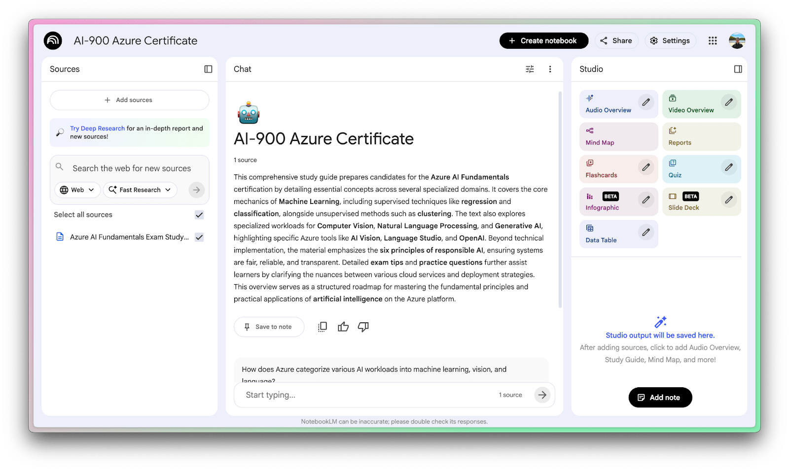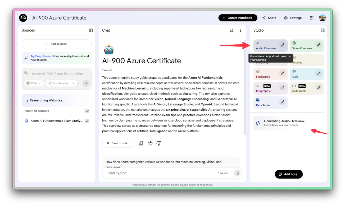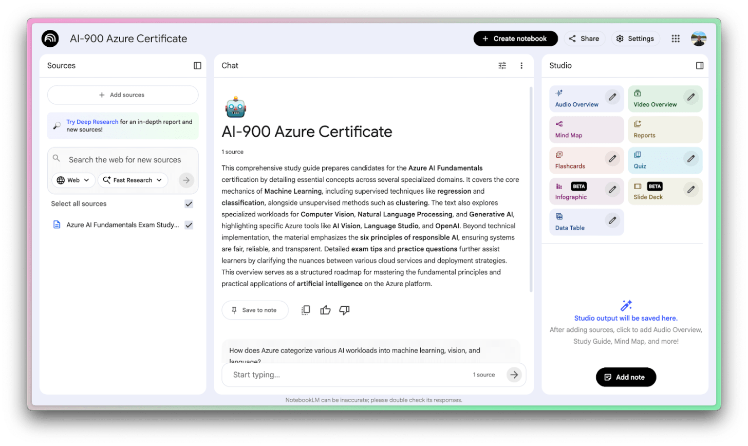 Once you’re happy with your sources, it’s time to actually use NotebookLM to learn things!