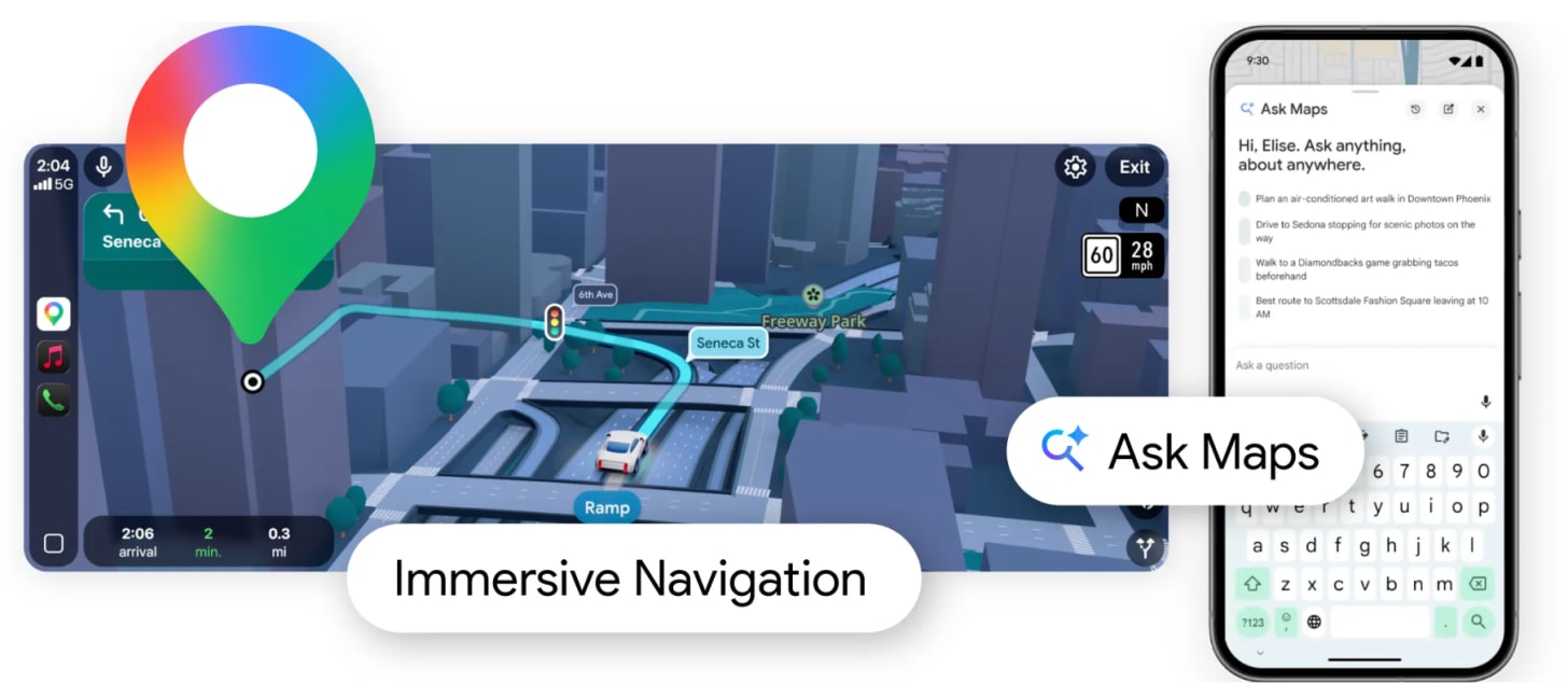 Ask Maps: A new conversational assistant powered by Gemini. Instead of just searching for keywords, you can ask complex, natural-language questions like, “Where can I charge my phone without a long wait for coffee?” or “Find a restaurant with vegan options and easy parking along my route.”