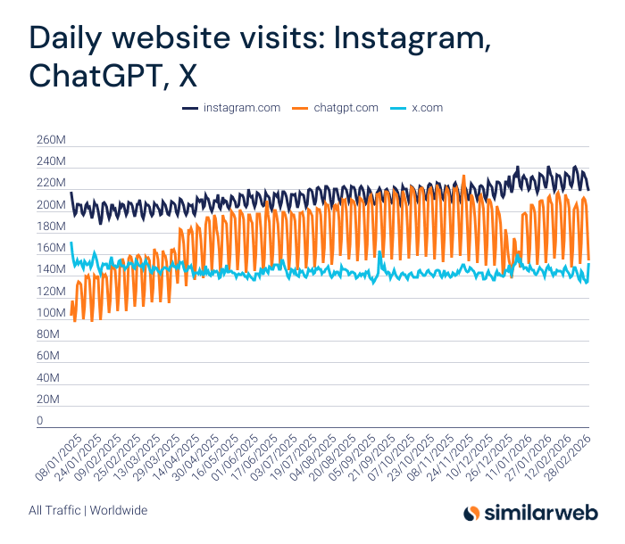 ChatGPT Briefly Surpassed Instagram in Traffic