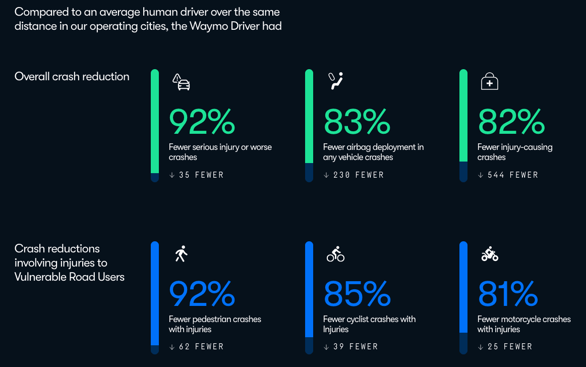 Waymo hits 170 million miles while avoiding serious mayhem. Waymo reports its fleet has logged over 170 million miles with far fewer serious-injury crashes than human drivers but faces scrutiny from safety advocates over how it frames its data, incidents involving pedestrians and emergency vehicles, and the limited scale of its operations.