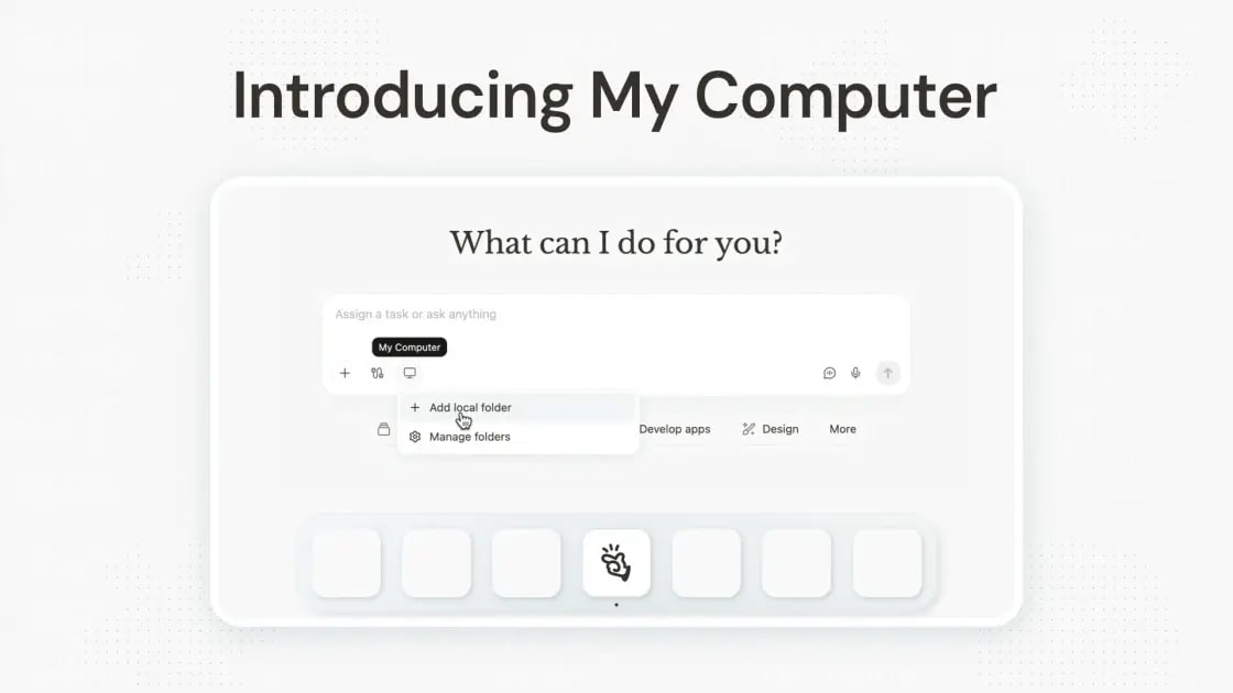 Summary: Meta’s newly acquired startup Manus released a desktop app for Mac (Apple Silicon) and Windows that brings its agentic system “My Computer” onto local machines. The app presents a chatbot-style interface with a central prompt and options to attach files or folders, then executes command line instructions (CLI) in the system terminal to carry out tasks. Capabilities include reading, analyzing, and editing local files; launching and controlling local applications; and performing bulk operations like sorting thousands of photos into categorized subfolders or renaming large batches of invoices. It can convert file formats, build simple apps, and even use a local GPU to train a machine learning model or run a large language model for inference.