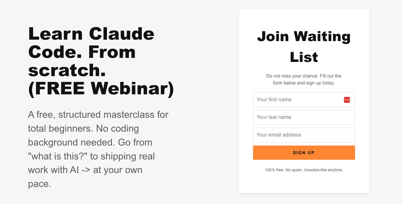 A lot of you have already signed up for our free Claude Code masterclass for beginners. If you haven’t yet, now’s the time.