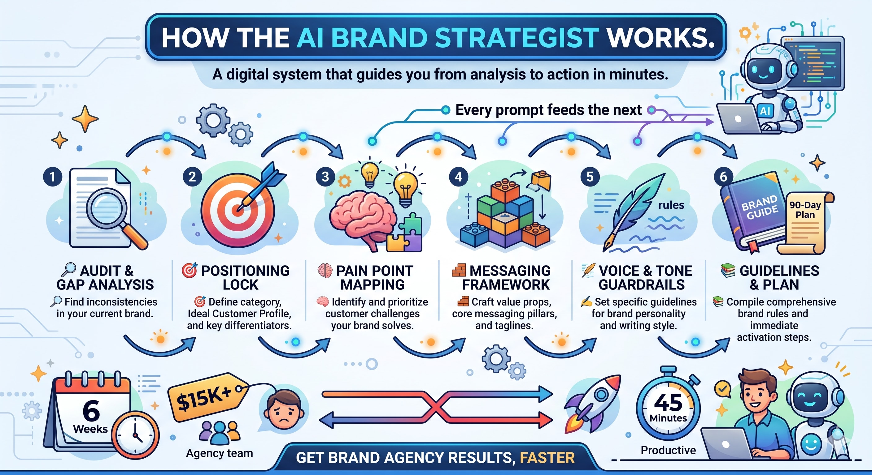 What used to take a $15K brand agency 6 weeks? You’ll knock out in about 45 minutes.